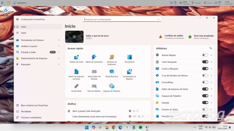 PowerToys 0.98 adiciona barra de atalhos no Windows e melhora várias funções Tecnologia • abril 12, 2026