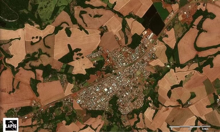 Imagens de satélite registram cidade no Paraná antes e depois da passagem de tornado Economia • novembro 14, 2025