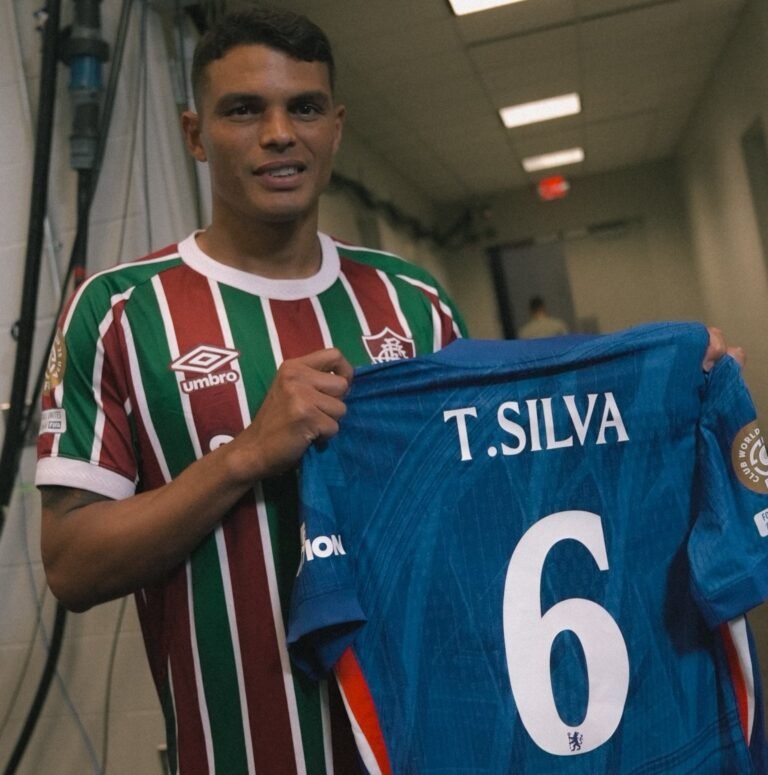 Após eliminação do Fluminense no Mundial, Thiago Silva recebe camisa do Chelsea Esportes • setembro 30, 2025