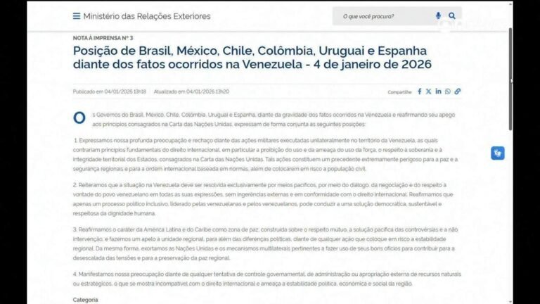Em nota, países latino-americanos expressam preocupação com ‘tentativa de controle governamental’ após ataque à Venezuela Mundo • janeiro 4, 2026