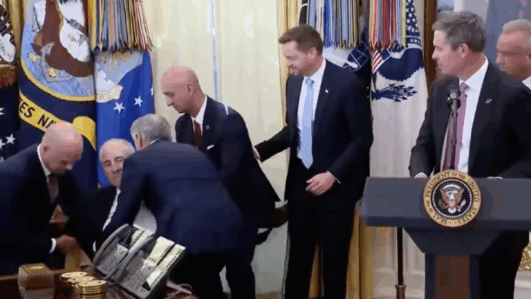 Homem cai ao lado de Trump depois de mal-estar em evento na Casa Branca
