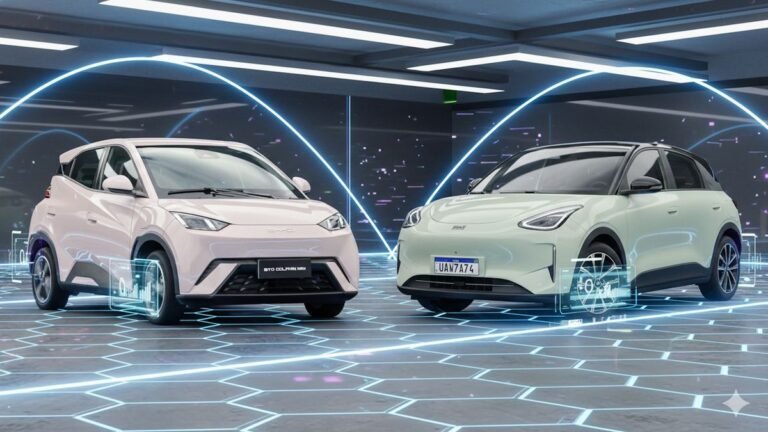 BYD Dolphin Mini x Geely EX2 Pro: desempenho, autonomia e custos dos elétricos Tecnologia • março 13, 2026