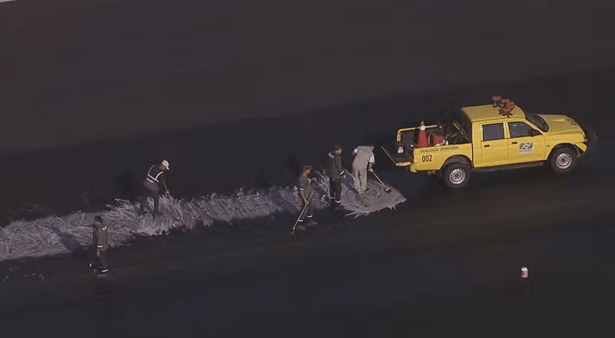 A suspensão das operações ocorreu devido à identificação de óleo espalhado por toda a pista principal, o que representava risco para as aeronaves.