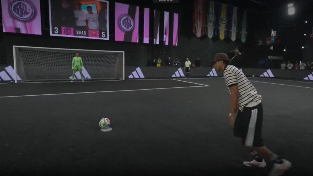 De camisa polo listrada, Yamal calçou as chuteiras, desceu das cabines e bateu com categoria, deslocando o goleiro adversário. Esse foi o terceiro pênalti presidente cobrado por ele na Kings League, e todos foram convertidos.