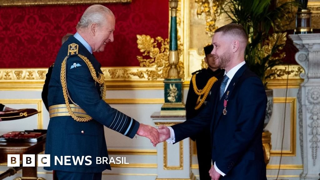 Nathan Newby recebeu do rei Charles 3° a medalha George, em reconhecimento pela sua coragem. Ele passou duas horas convencendo o “terrorista lobo solitário” Mohammad Farooq a abandonar seu plano no hospital local St. James, em 2023.