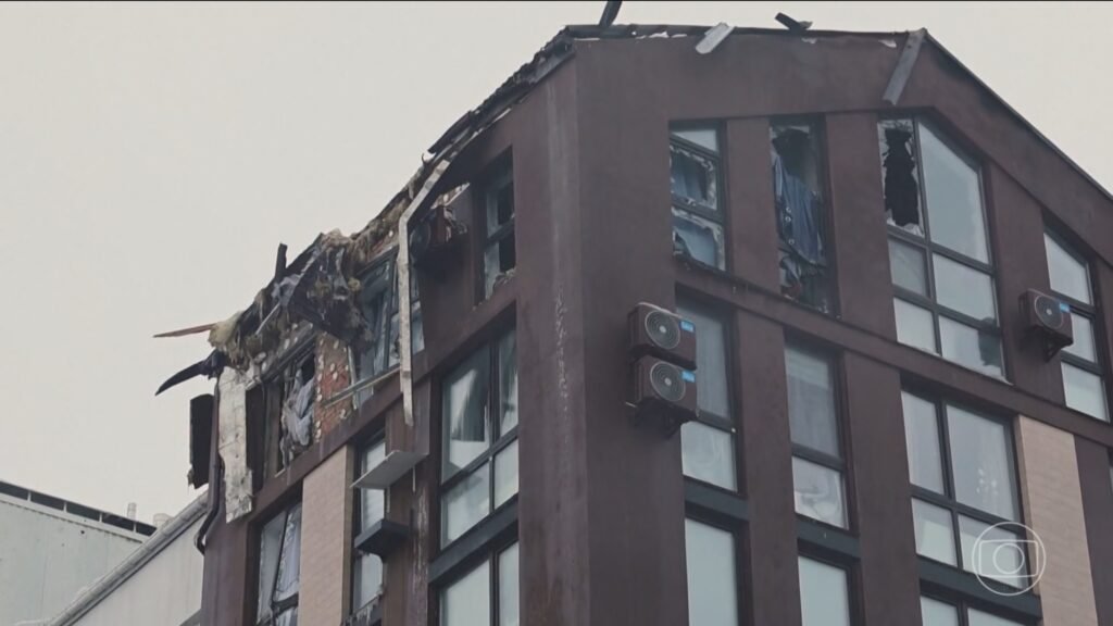 Novos ataques russos com drones matam 9 pessoas e ferem mais de 30 na Ucrânia — Foto: Jornal Nacional/ Reprodução