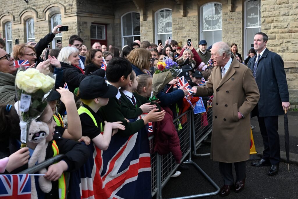 Rei Charles III foi confrontado sobre envolvimento do irmão com Epstein enquanto cumprimentava súditos — Foto: PAUL ELLIS/Pool via REUTERS