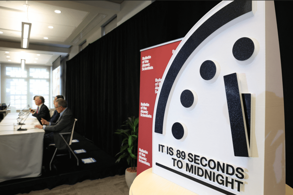 Cientistas atômicos ajustaram o ‘Relógio do Juízo Final’ para mais perto do que nunca da meia-noite, citando o comportamento agressivo das potências nucleares Estados Unidos, Rússia e China. Os pesquisadores também citaram o desgaste do controle sobre armas nucleares, guerras na Ucrânia e no Oriente Médio e preocupações com a inteligência artificial como fatores que aumentam os riscos de desastres globais.