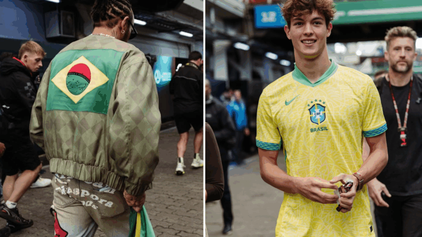 Lewis Hamilton, da Ferrari, e Oliver Bearman, da Haas, utilizaram neste domingo (9.nov.2025) roupas com referências brasileiras na chegada ao Autódromo de Interlagos para o GP de São Paulo. O heptacampeão mundial apareceu com uma jaqueta personalizada estampando a bandeira do Brasil nas costas, enquanto o jovem piloto britânico vestia uma camisa da seleção brasileira.