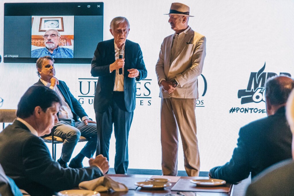 O novo documento do partido, intitulado “Caminhos para o Brasil”, foi divulgado em evento no Centro de Convenções Brasil 21, com a presença, entre outros, do presidente do MDB, Baleia Rossi, da ministra Simone Tebet (Planejamento), do prefeito de São Paulo, Ricardo Nunes, e do ex-presidente da República José Sarney.