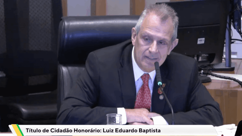 A CLDF (Câmara Legislativa do Distrito Federal) concedeu nesta 4ª feira (12.nov.2025) o Título de Cidadão Honorário de Brasília ao presidente do Flamengo, Luiz Eduardo Baptista, conhecido como Bap. A cerimônia foi realizada às 10h no plenário da Casa Legislativa. A homenagem foi proposta pelo deputado Pastor Daniel de Castro (PP).