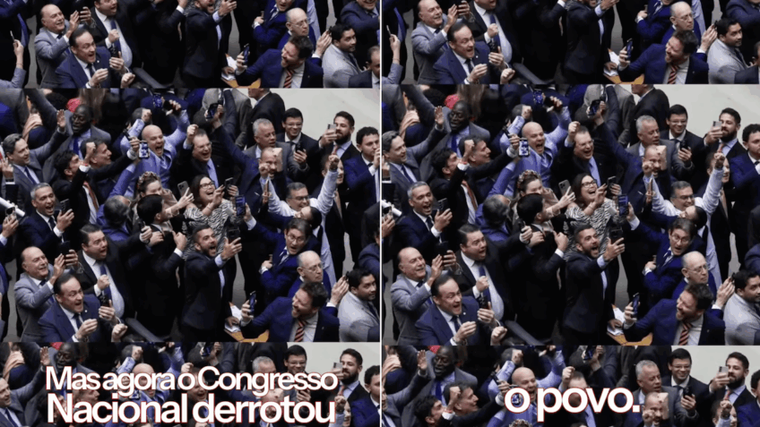 “Derrotaram o projeto que cobra mais impostos dos bilionários, bancos e bets. Eles pagariam um pouquinho do que ganham do povo, para fazer justiça com todo o país. O que está em jogo é o equilíbrio das contas do Brasil”, diz o vídeo.
