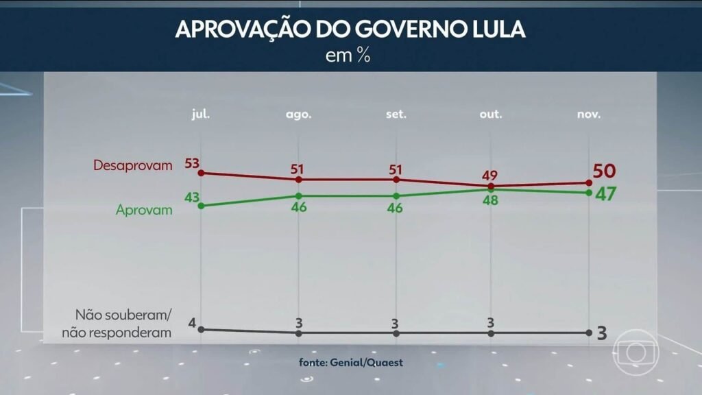 Ela mostra a diferença do presidente Luiz Inácio Lula da Silva (PT) para seus adversários nas simulações de segundo turno caindo entre outubro e novembro — período no qual ocorreu a operação contra o Comando Vermelho no Rio e Lula deu declarações ruins sobre o assunto.
