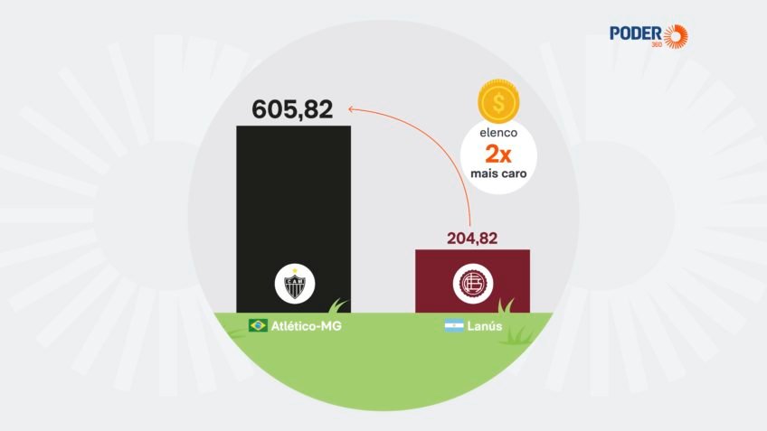 O Atlético-MG tem elenco avaliado em R$ 605,8 milhões, com valor de mercado 2 vezes superior ao de seu adversário na decisão, o Lanús, da Argentina, estimado em R$ 204,82 milhões.