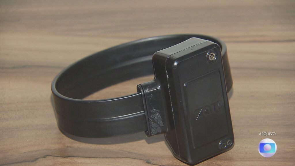 Tornozeleira eletrônica em cima de uma mesa — Foto: TV Globo/Reprodução