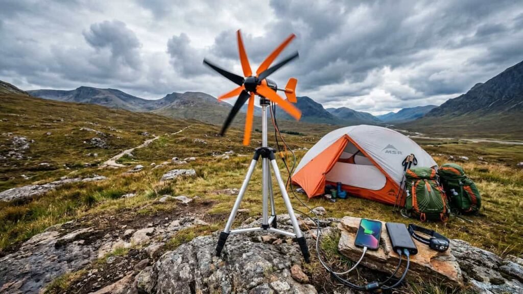 Como funciona a turbina eólica portátil no acampamento?