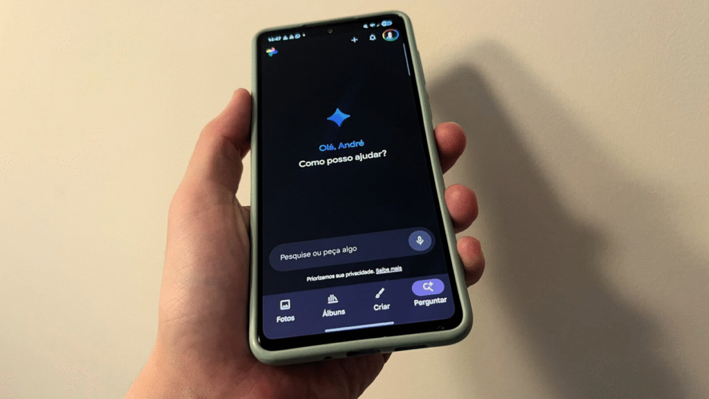 O Google Fotos para celulares tem uma ferramenta de busca com IA que usa a tecnologia do Gemini. É possível encontrar imagens e vídeos da galeria a partir de prompts simples, como “fotos da minha viagem em março”, sem a necessidade de muitos comandos na tela.