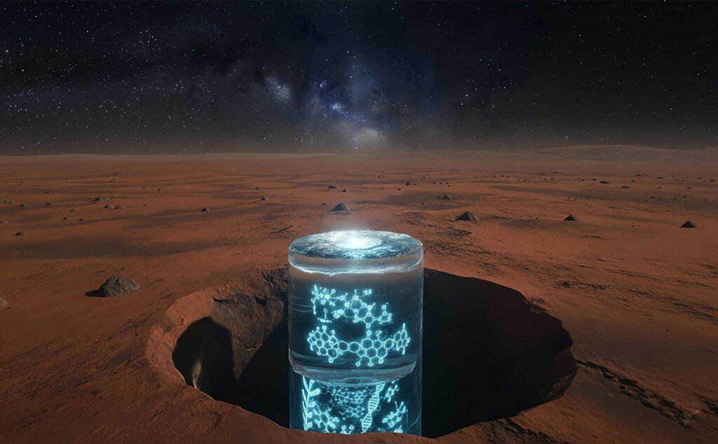 Segundo a pesquisa, fragmentos de moléculas microbianas antigas teriam o potencial de sobreviver no gelo marciano por dezenas de milhões de anos – tempo suficiente para que futuras missões espaciais possam abrir essa “cápsula do tempo” e localizá-las.