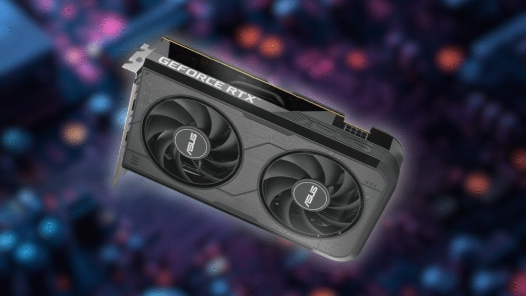 O modelo Dual da Asus foca no essencial: durabilidade e eficiência. Com um sistema de refrigeração robusto de duas ventoinhas Axial-tech e um design compacto de 2 slots, ela é compatível com praticamente q