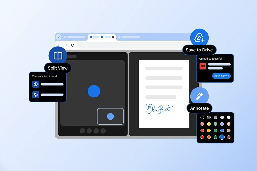 O Google anunciou nesta quinta-feira (19) três novos recursos de produtividade para o Chrome: o modo de visualização dividida (Split View), ferramentas de anotação em documentos PDF e a função “Salvar no Google Drive”.