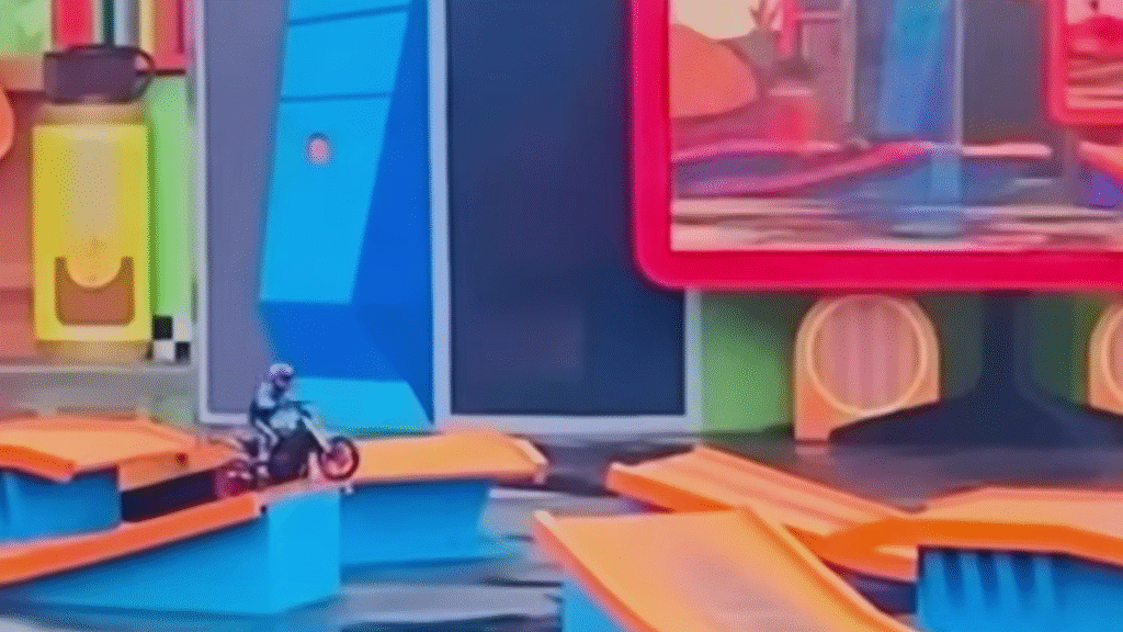 O acidente ocorreu quando Ferrari fez um salto de uma rampa em direção a outra. As imagens do ocorrido mostram que o piloto seguia atrás de outro co