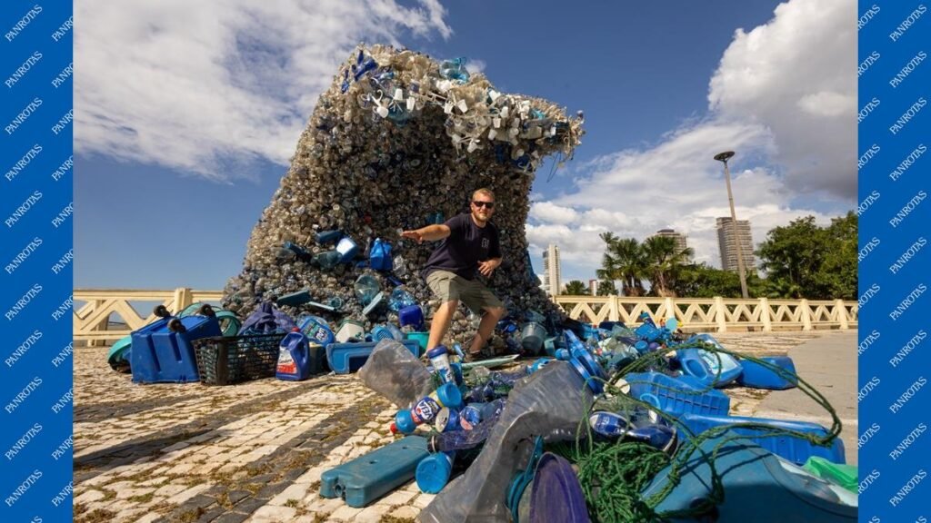 A obra, uma estrutura de três metros formada por materiais recicláveis coletados em ações de limpeza realizadas por colaboradores voluntários, ficará exposta entre 10 e 21 de novembro no Complexo Turístico Ver-o-Rio, durante a COP30. A proposta é estimular o debate sobre descarte de resíduos, preservação dos oceanos e hábitos de consumo.