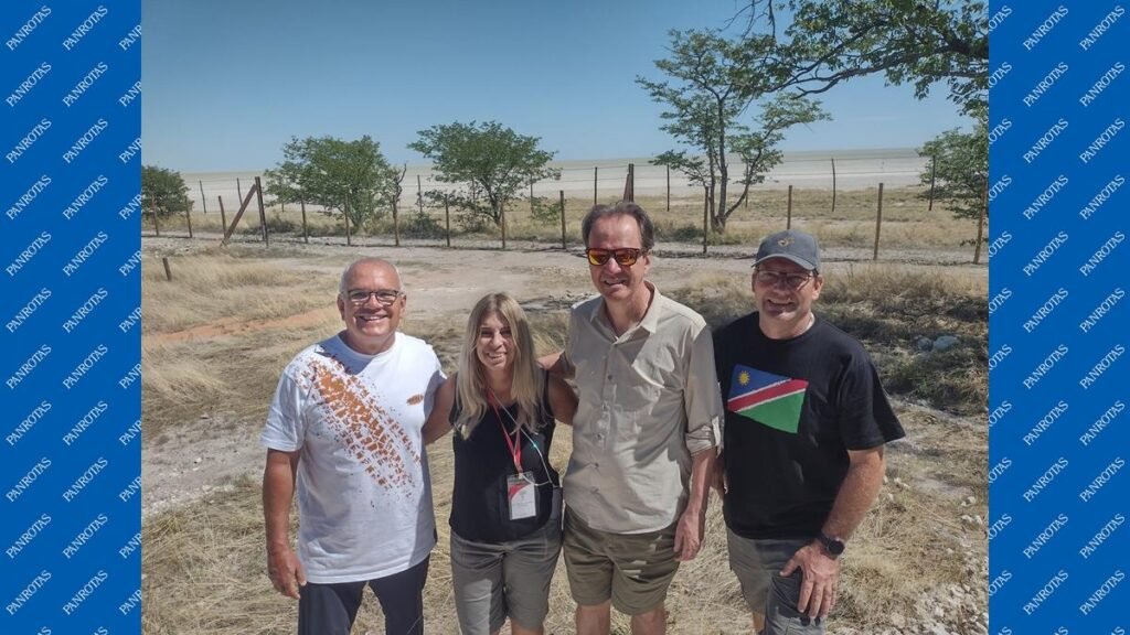 PARQUE NACIONAL ETOSHA – Os 11 agentes de viagens do famtour da Flot na Namíbia tiveram, nesta quarta (26), uma experiência para lá de ímpar. O grupo observou uma manada de elefantes dentro do Parque Nacional Etosha, literalmente, de um camarote a menos de 100 metros de distância dos animais.