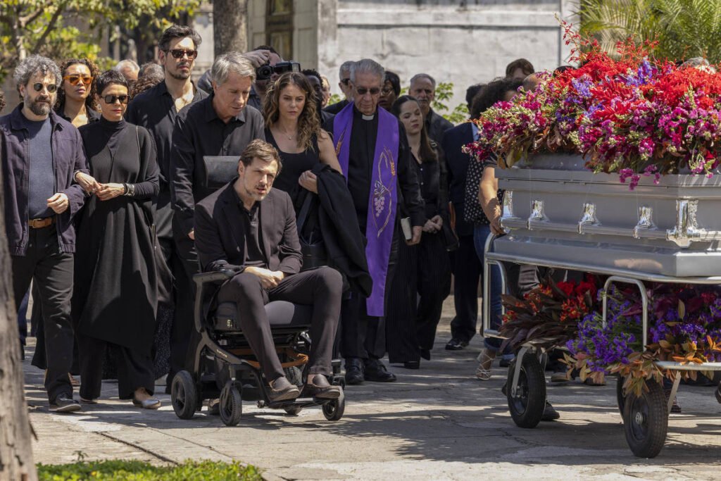 – Cena exibe cortejo fúnebre da vilã com caixão fechado e clima de mistério sobre os possíveis culpados